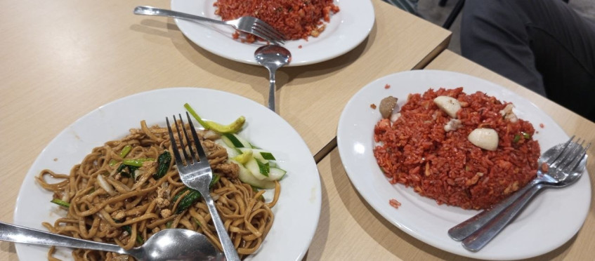 Karena kami sedang lapar berat, kami pun memesan nasi goreng ayam, spesial, dan mi goreng. Perlu diingat, porsinya lumayan besar, ya. Jadi kami memesan 3 porsi untuk 4 orang.
