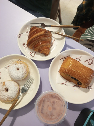 The pastry is quite big with good layering. You can choose original, chocolate, cheese, almond, or choco cheese pastry. I like all. It is one of the best pastries with affordable price. Instead pastry, you can choose other snacks, like donuts, chips, fried banana, potato, tofu, etc.
