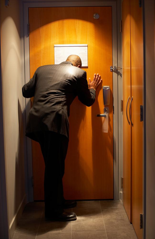 Jika seseorang datang tanpa diundang dan mengaku staf hotel, telepon dulu lobi untuk memastikan. Jangan pernah membuka pintu untuk orang yang tidak dikenal. Gunakan lubang di pintu untuk mengintip.