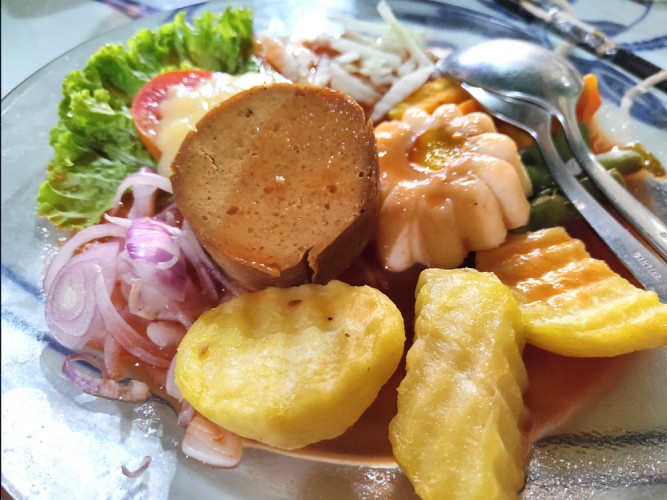 Di setiap meja terdapat beberapa macam kue tradisional di jajakan. Jadi yang mau bisa langsung makan. Kami memesan Galantin kuah segar dan Selat bestik. Rasanya emang enak, khas bistik rumahan jaman oma-oma dulu, dari segi harga pun masih sangat terjangkau.