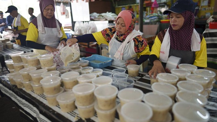 Makanan manis dan gurih khas Ramadan yang terkenal antara lain kurma, puding, kue kari, dan minuman es seperti kacang kedelai, jus tebu, dan kelapa segar. Merupakan tradisi setiap bulan Ramadan untuk membuat dan membagikan bubur lambuk. Bubur berbumbu kental yang mengandung daging, santan, bumbu dan sayuran.
