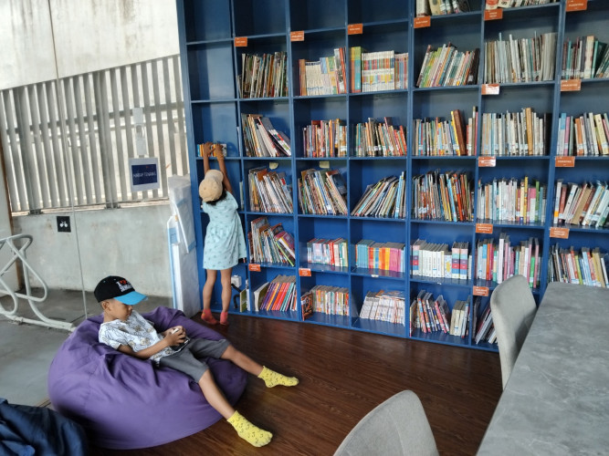 The main attraction for sure is the library. It is called Taman Literasi or Literacy Garden. The collections quite complete, from history, philosophy, literature, children story, etc. We can read on the couch, chair with tables, or just laying down on carpet. It was comfortable, therefore we stayed for a long time. The staff said there were very crowded in the weekend, so visitors should que. Lucky us!
