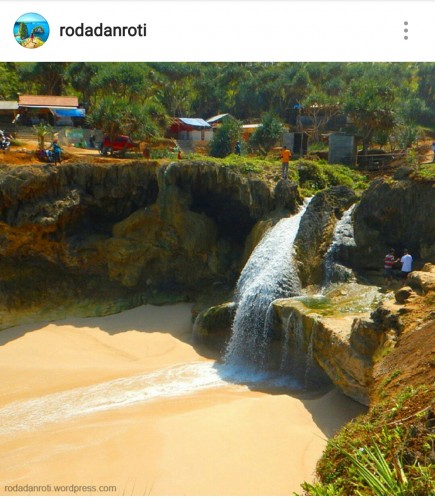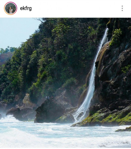 Air terjun ini berasal dari sungai yang tampaknya kecil, tetapi saat jatuh ke laut airnya ternyata cukup banyak. Disini kamu dapat turun ke pantai dan berada dibawah air terjun langsung.